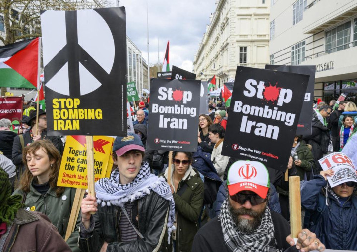 3月28日,豪门国际娱乐东谈主们在英国伦敦插足集中,抗议好意思国和以色列对伊朗发动军事打击。新华社发(雷伊·唐摄)